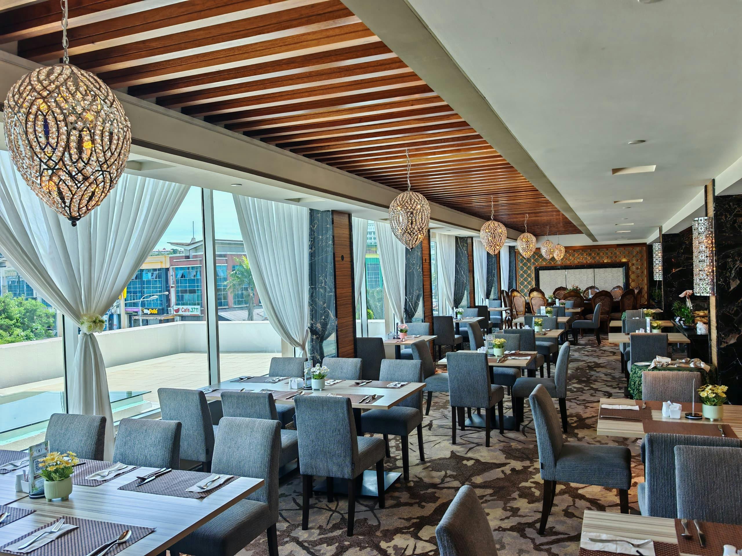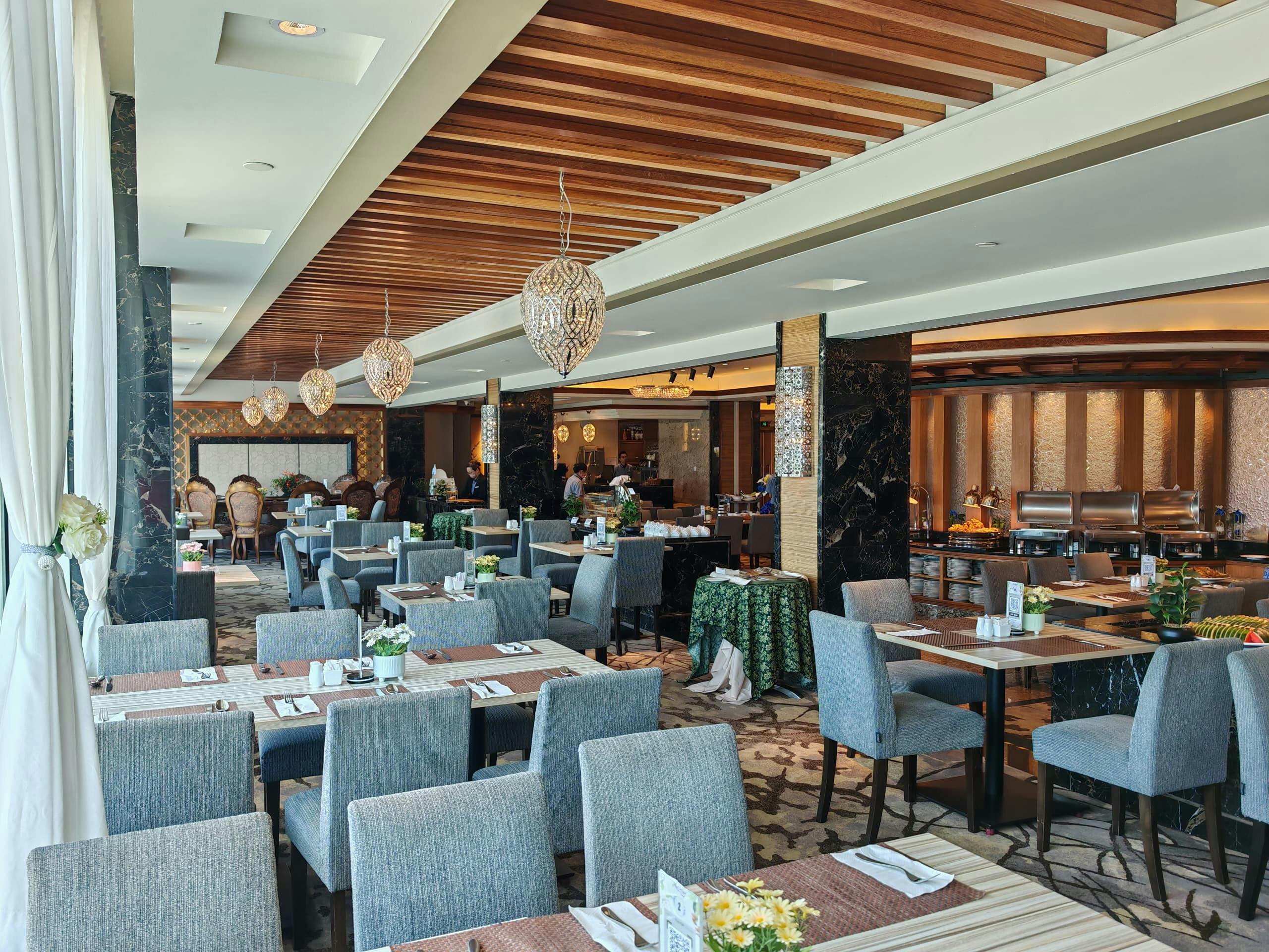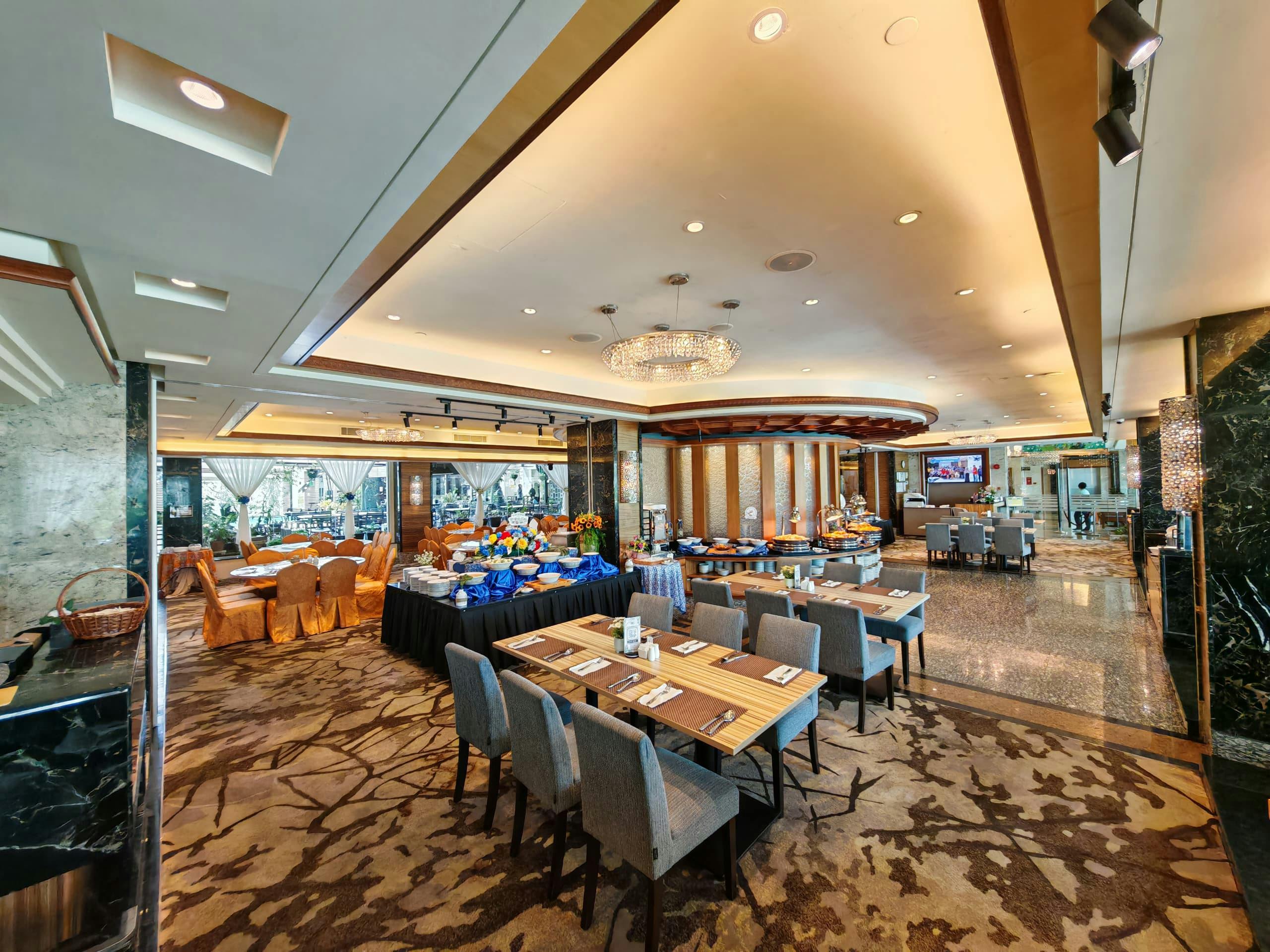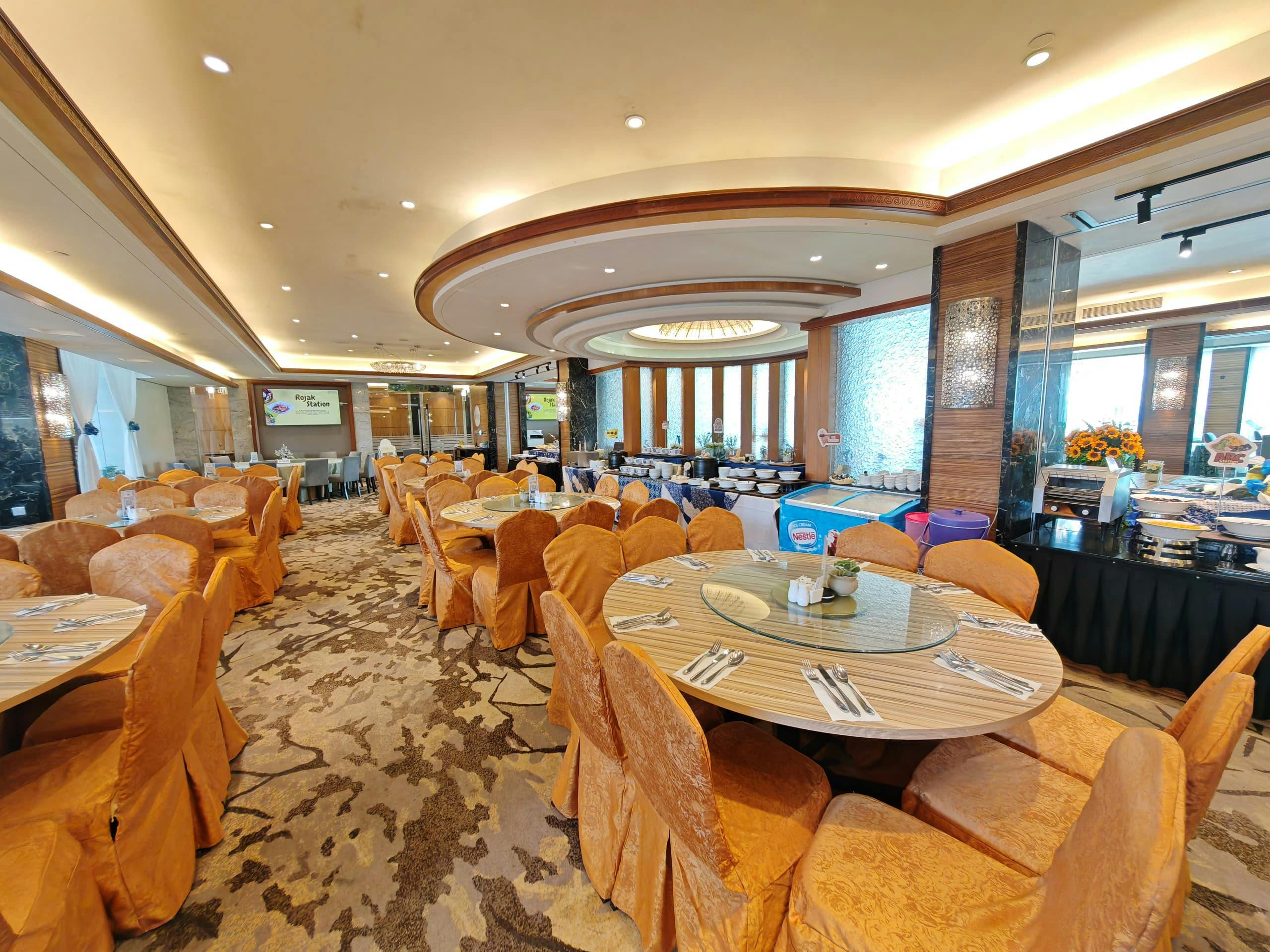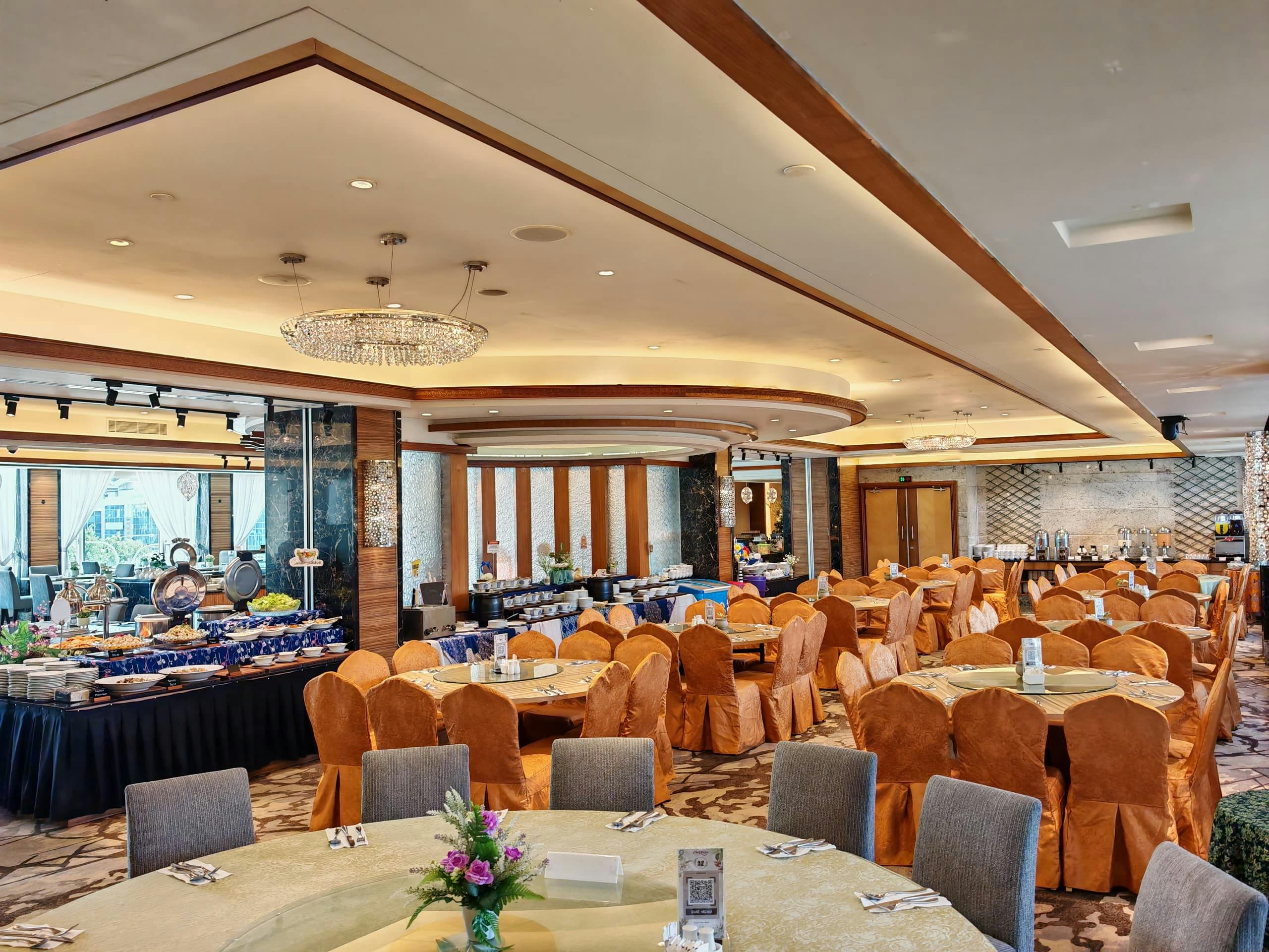 The restaurant provides a diverse culinary experience, featuring a wide array of both local specialties and international dishes to cater to various tastes. Guests can enjoy à la carte options throughout the day, allowing for flexible dining choices at any time. In addition to the à la carte menu, the establishment offers a hearty daily buffet breakfast and lunch, providing a convenient and generous way to start the day or enjoy a midday meal. For those seeking a more exclusive or private dining experience, there is a VIP room available, equipped to cater to distinguished guests or special occasions. Furthermore, another section of the restaurant can be partitioned off to create a private area, ideal for intimate dinners, celebrations, or confidential meetings, ensuring a versatile and accommodating dining environment.